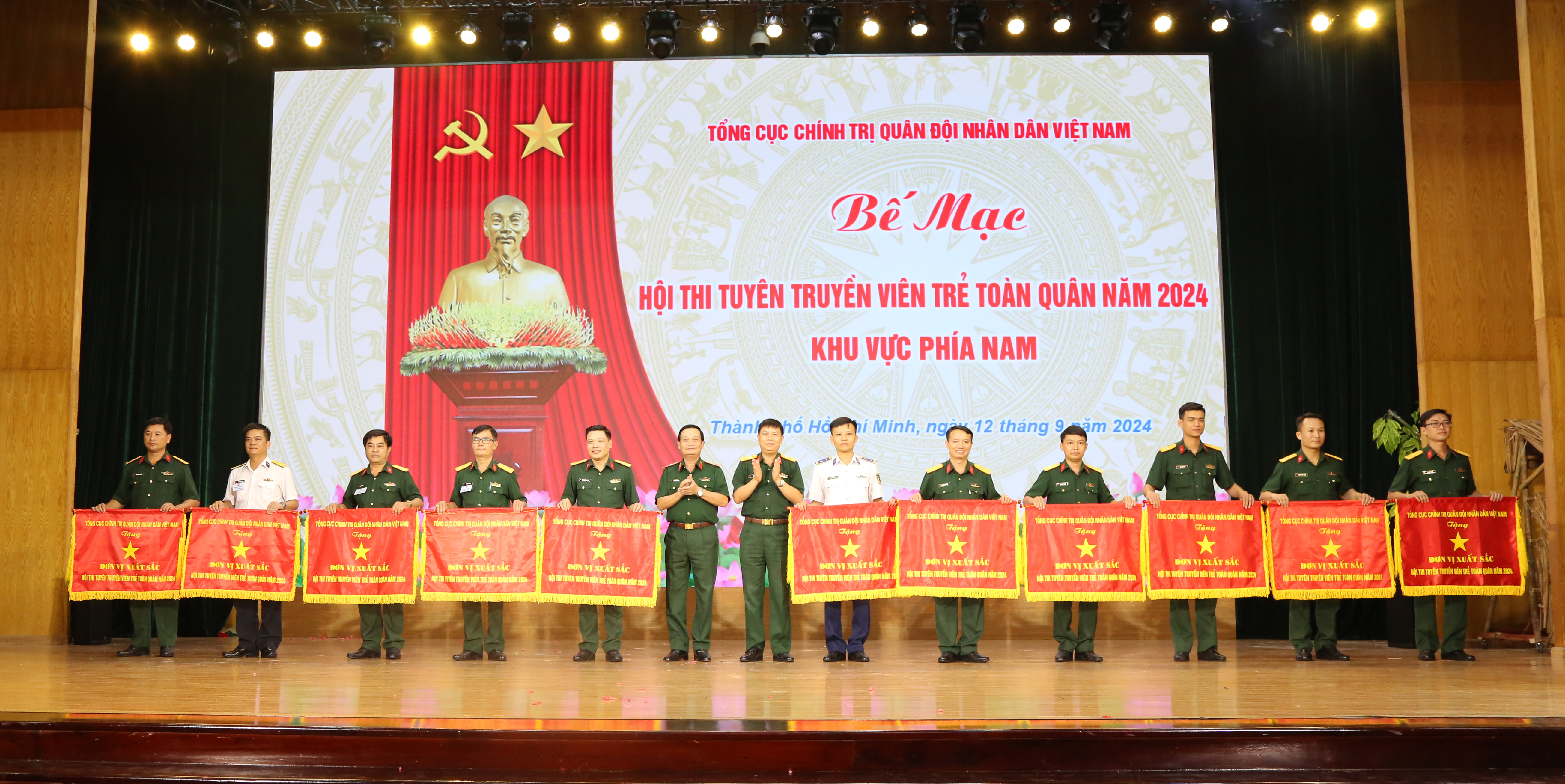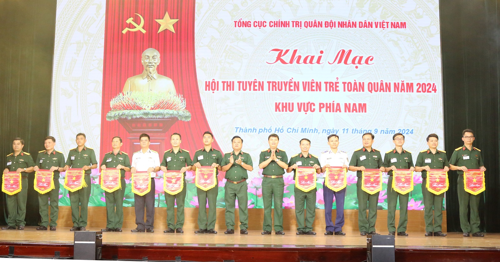 Sáng 12/9, tại TP. Hồ Chí Minh, Hội thi tuyên truyền viên trẻ toàn quân năm 2024 khu vực phía Nam đã kết thúc tốt đẹp sau 2 ngày tranh tài sôi nổi. Đội tuyên truyền viên trẻ Quân chủng Hải quân đạt xuất sắc, được tặng Cờ thưởng của Tổng cục Chính trị QĐND Việt Nam.