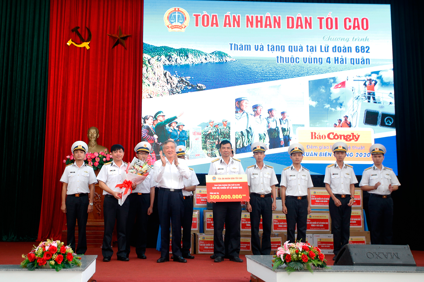 Nhân dịp này, đoàn công tác Tòa án Nhân dân tối cao đã tặng quà Lữ đoàn 682 gồm máy tính và một số thiết bị văn phòng tổng trị giá 300 triệu đồng.