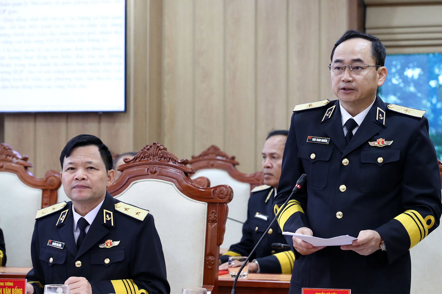 Chuẩn Đô đốc Trần Thanh Nghiêm báo cáo với đồng chí Thường trực Ban Bí thư về kết quả công tác xây dựng Đảng và thực hiện nhiệm vụ quân sự, quốc phòng từ sau Đại hội XIII của Đảng đến nay. Hoạt động CTĐ, CTCT của Quân chủng Hải quân được triển khai toàn diện, đồng bộ, góp phần xây dựng Hải quân Nhân dân Việt Nam vững mạnh về chính trị, tư tưởng, tổ chức và đạo đức.