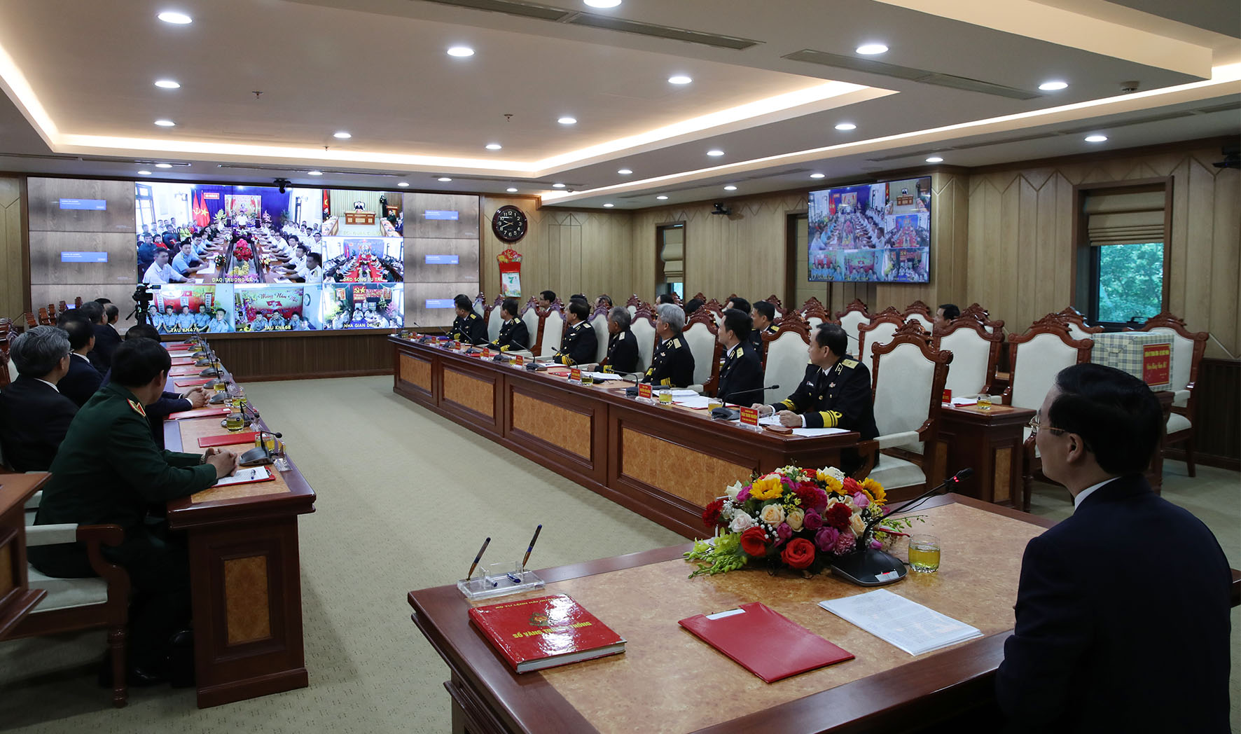 Thông qua hệ thống truyền hình trực tuyến, đồng chí Võ Văn Thưởng đã nói chuyện, chúc Tết quân, dân huyện đảo Trường Sa; Nhà giàn DK1 và các tàu trực.