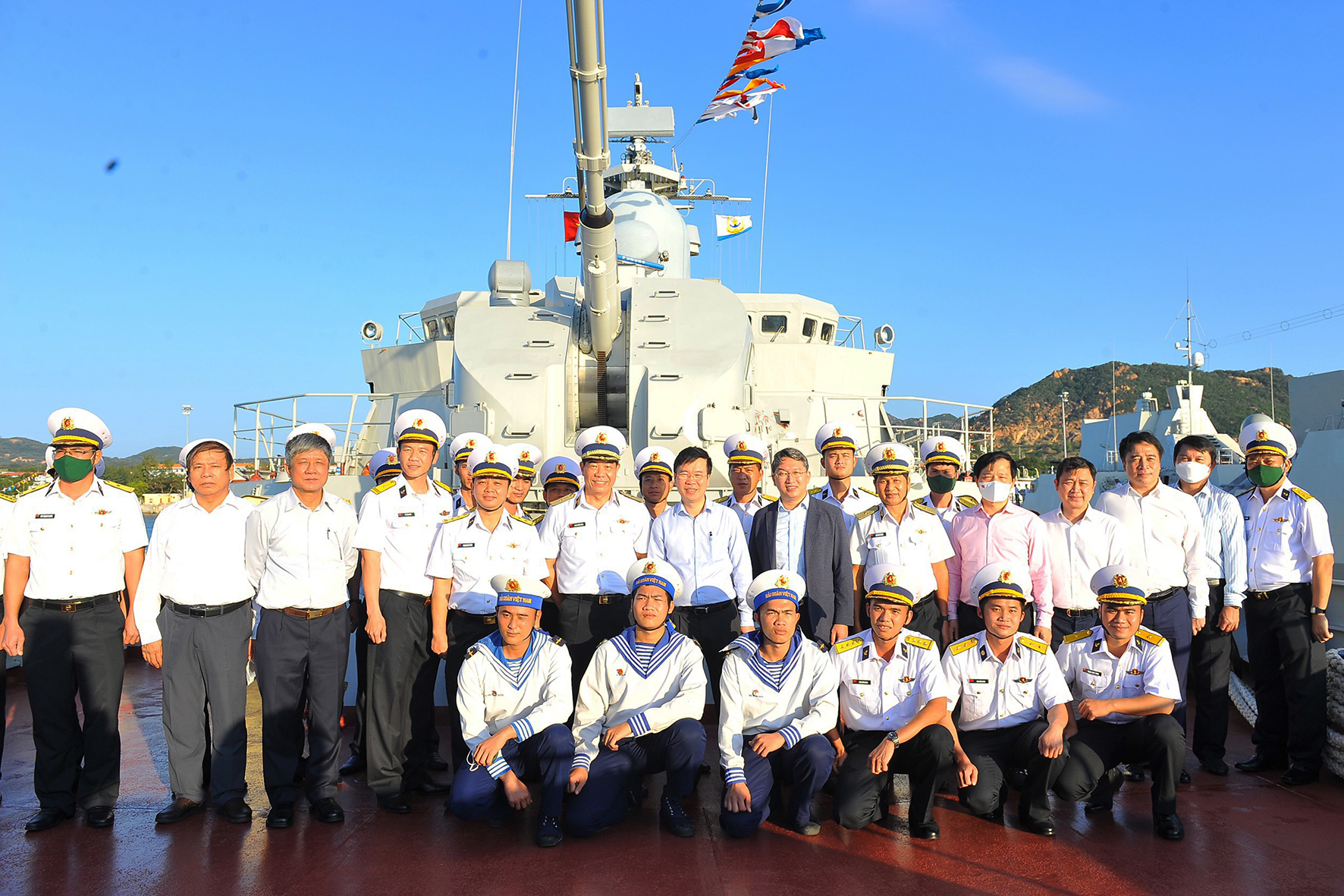 Đồng chí Võ Văn Thưởng chụp ảnh lưu niệm tại Tàu 016-Quang Trung, Lữ đoàn 162, Vùng 4