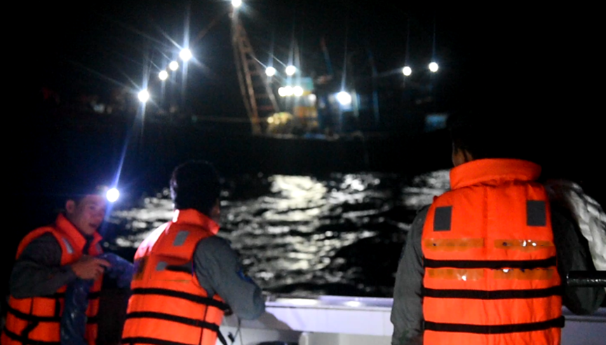 19h45' ngày 24-11, Tàu KN 364 thuộc Chi đội Kiểm ngư số 3 nhận lệnh cơ động cứu kéo 2 tàu cá ngư dân bị nạn trên biển.