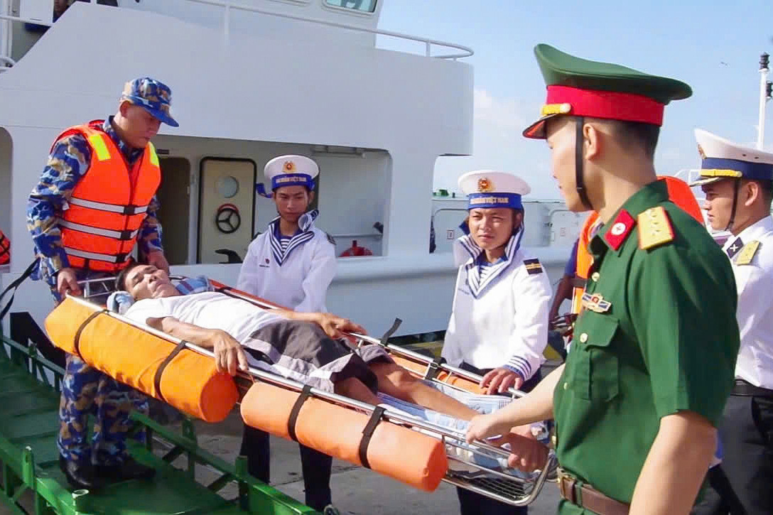 Trước đó, ngày 1/9, ngư dân Trần Đi là lao động trên tàu cá BĐ 97652 TS của tỉnh Bình Định bị dây lưới tàu quấn vào chân đứt gần lìa vùng cổ chân phải. Sau khi ngư dân được đưa vào đảo Trường Sa, chỉ huy đảo đã nhanh chóng chỉ đạo các bác sĩ cấp cứu và hướng dẫn cho tàu cá vào cảng neo đậu.