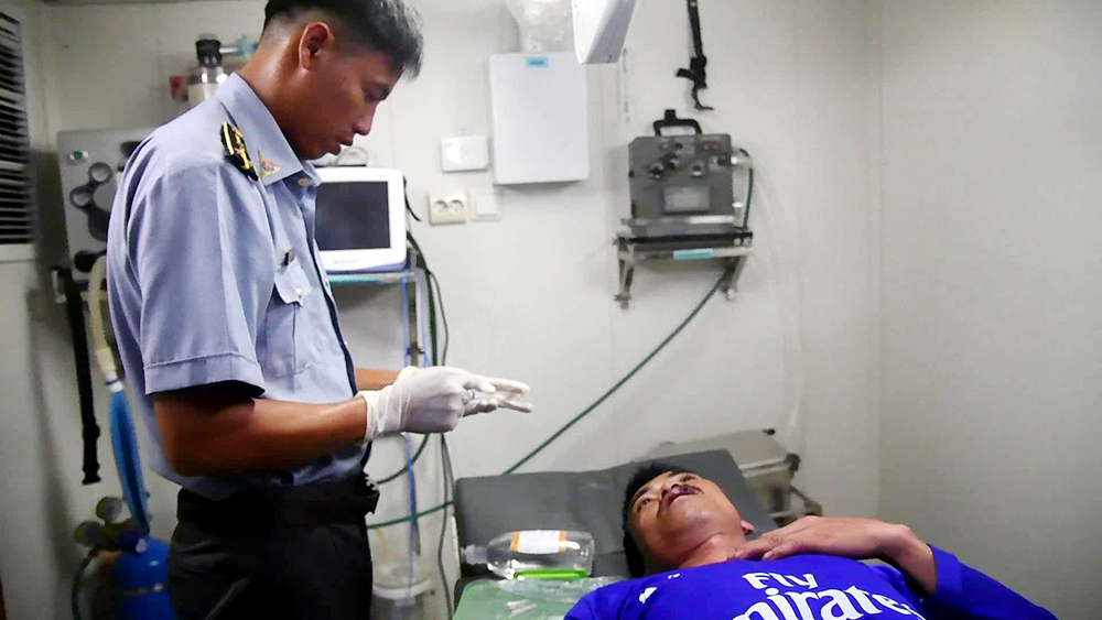 Nhân viên y tế tàu 267 đã khâu vết thương, tiêm kháng sinh, giảm đau, chống phù nề và theo dõi sức khỏe cho ngư dân. Đến 22 giờ, sức khỏe của anh Dũng ổn định và anh xin được trở lại tàu cá.