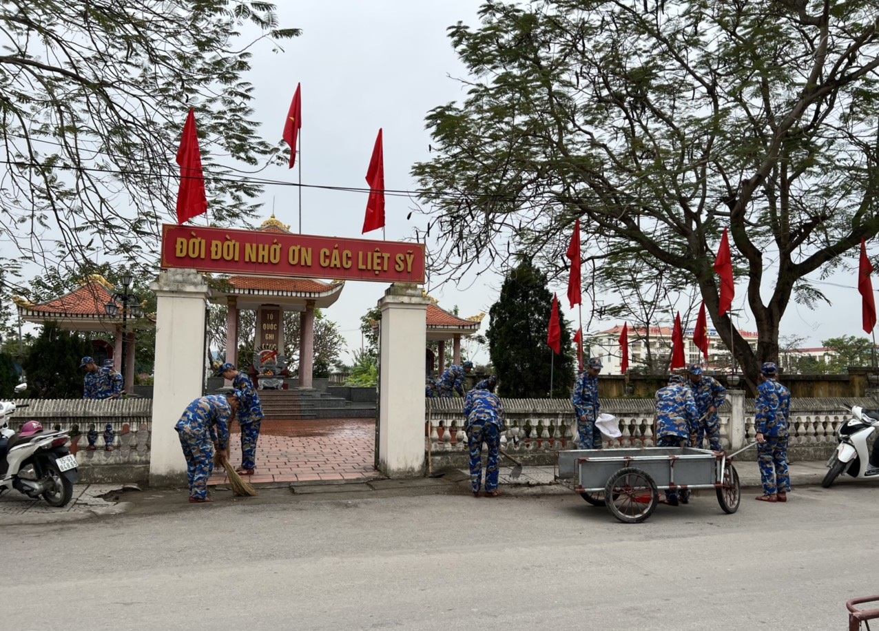Với tinh thần làm việc khẩn trương, trách nhiệm, các lực lượng đã thu gom hàng tấn rác thải, tổng dọn vệ sinh, làm đẹp khuôn viên đài tưởng niệm các anh hùng, liệt sĩ và hơn 3km đường liên xã, liên thôn của 2 địa phương.