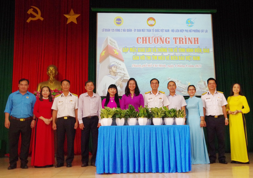 Sáng 4/8, tại TP. Thủ Đức, TP. Hồ Chí Minh, Lữ đoàn 125, Vùng 2 Hải quân đã phối hợp thông tin về biển, đảo cho gần 100 đại biểu là cán bộ, đảng viên, đoàn viên thanh niên phường Cát Lái.