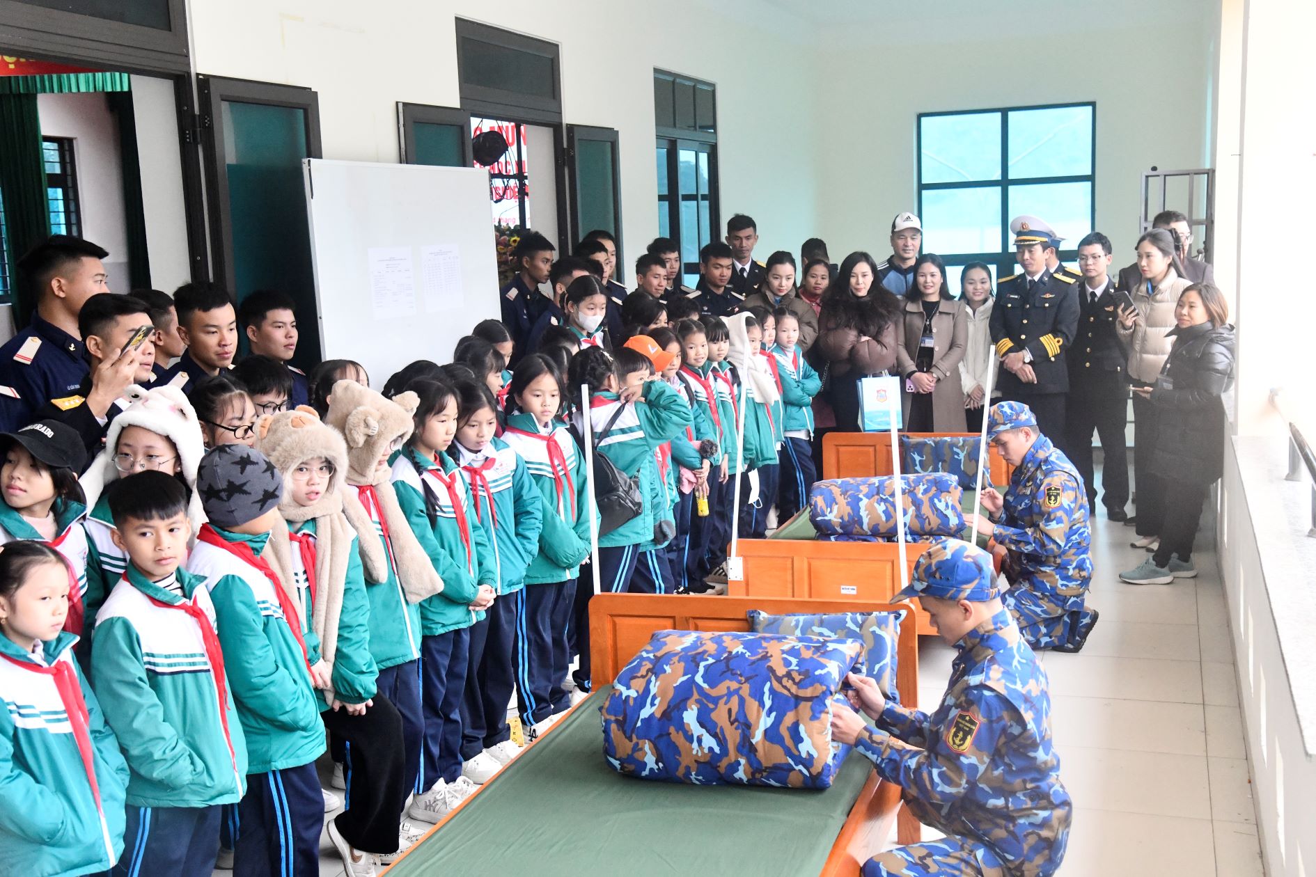 Ngày 14/12, tại huyện Vân Đồn, tỉnh Quảng Ninh, Lữ đoàn 169, Vùng 1 Hải quân tổ chức đón tiếp gần 100 giáo viên, học sinh Trường Tiểu học Kim Đồng, thị trấn Cái Rồng, huyện Vân Đồn đến tham quan, trải nghiệm tại Lữ đoàn. Thượng tá Lê Quang Trưởng, Phó Lữ đoàn trưởng chủ trì đón đoàn.