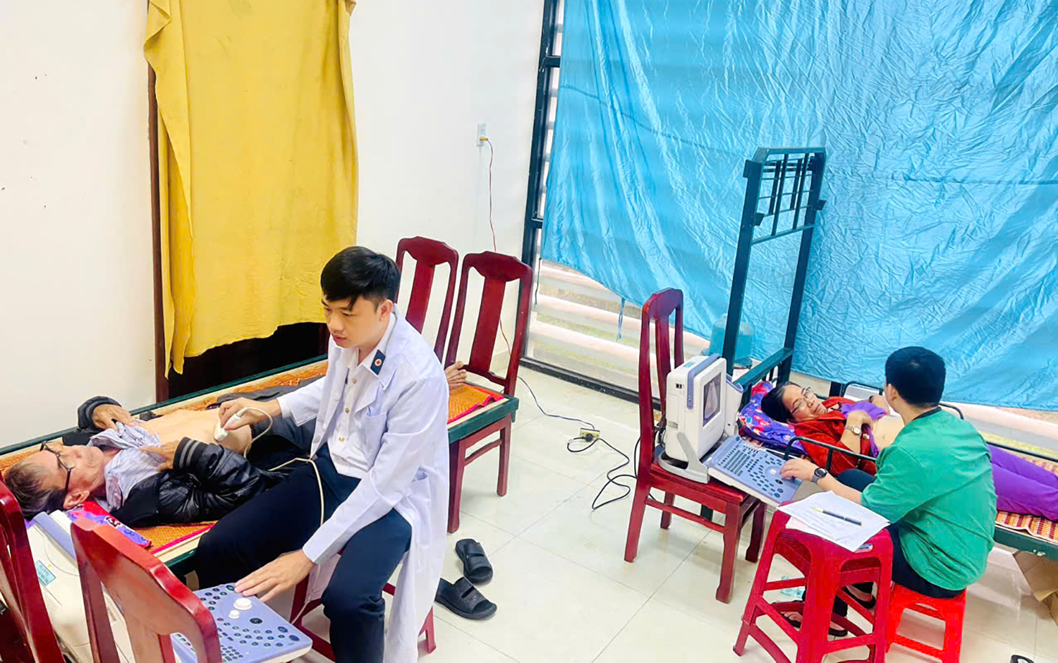 Gần 300 người dân thuộc diện hộ nghèo, gia đình chính sách của các xã đã được các y, bác sĩ Hải quân khám bệnh, siêu âm, đo điện tim, tư vấn sức khỏe và cấp thuốc miễn phí.