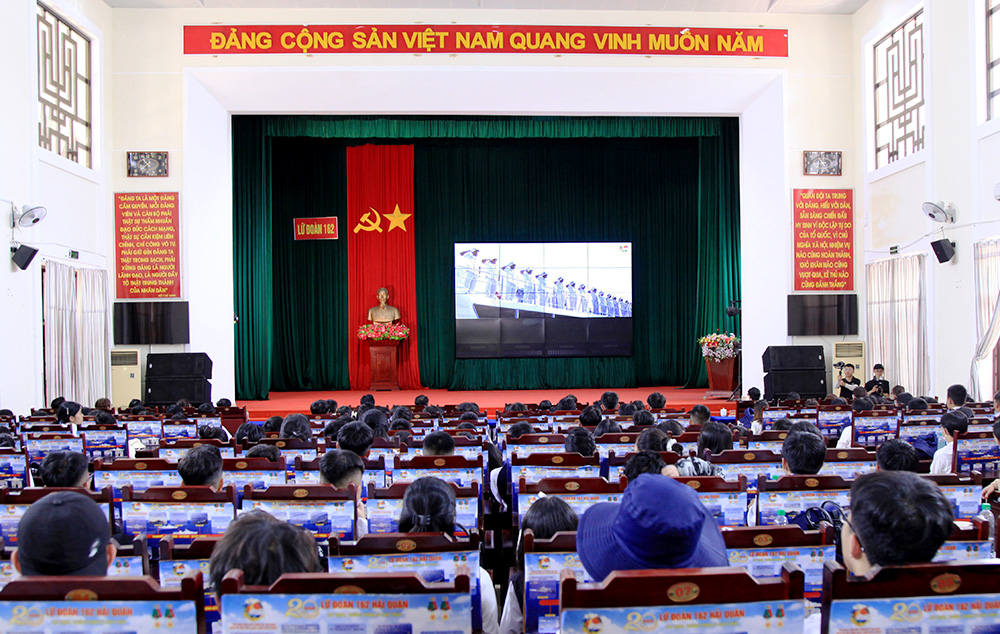 Sáng 10/12, gần 500 giáo viên, học sinh Trường THCS Nguyễn Du, TP. Đà Lạt, tỉnh Lâm Đồng đã đến tham quan, tìm hiểu thực tế tại Lữ đoàn 162, Vùng 4 Hải quân (TP. Cam Ranh, tỉnh Khánh Hòa).
