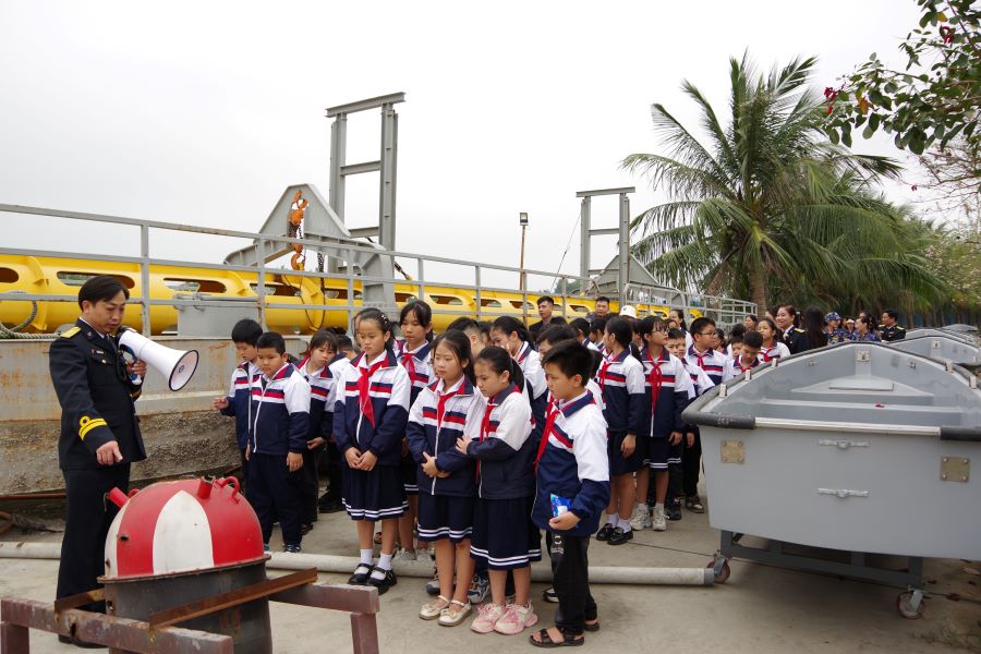 Chiều 15/3, tại Hải Phòng, Đoàn cơ sở Viện Kỹ thuật Hải quân phối hợp với Đoàn phường Anh Dũng và Trường Tiểu học phường Anh Dũng, quận Dương Kinh, TP. Hải Phòng tổ chức cho gần 70 giáo viên, học sinh tham quan, trải nghiệm tại đơn vị.