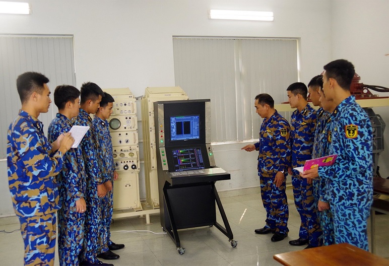 Huấn luyện thực hành trên mô hình ra đa sô na ở Trường CĐKTHQ. Ảnh: CTV
