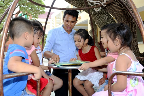 Thầy Phạm Xuân Diệu dạy các em nhỏ trên đảo Sinh Tồn qua sách báo