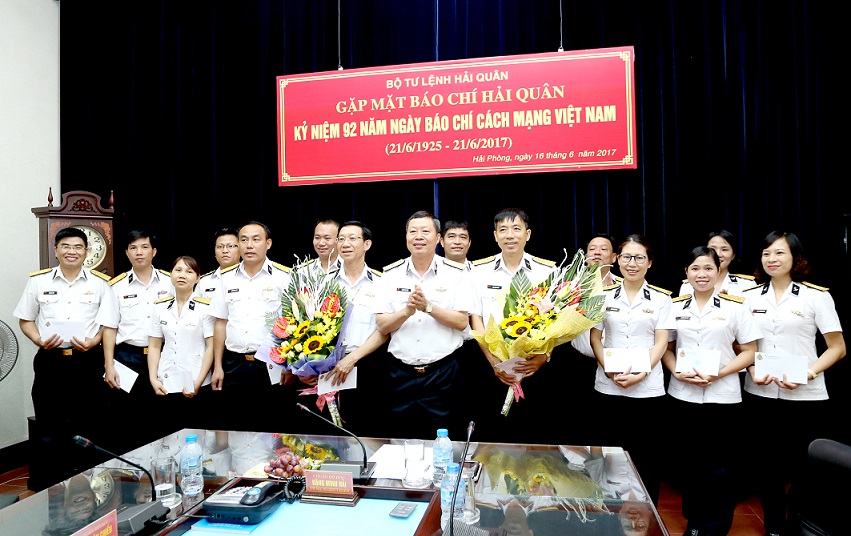 Sáng 16-6, tại Hải Phòng, Bộ Tư lệnh Hải quân đã tổ chức gặp mặt cán bộ, phóng viên Báo Hải quân Việt Nam và Tạp chí Hải quân nhân kỷ niệm 92 năm, Ngày Báo chí Cách mạng Việt Nam (21-6-1925 – 21-6-2017). Dự buổi gặp mặt có Chuẩn Đô đốc Đặng Minh Hải, Uỷ viên Thường vụ Đảng ủy Quân chủng, Phó chính uỷ Hải quân; đại biểu đại diện các cơ quan chức năng Quân chủng và đông đủ cán bộ, phóng viên Báo và Tạp chí Hải quân.