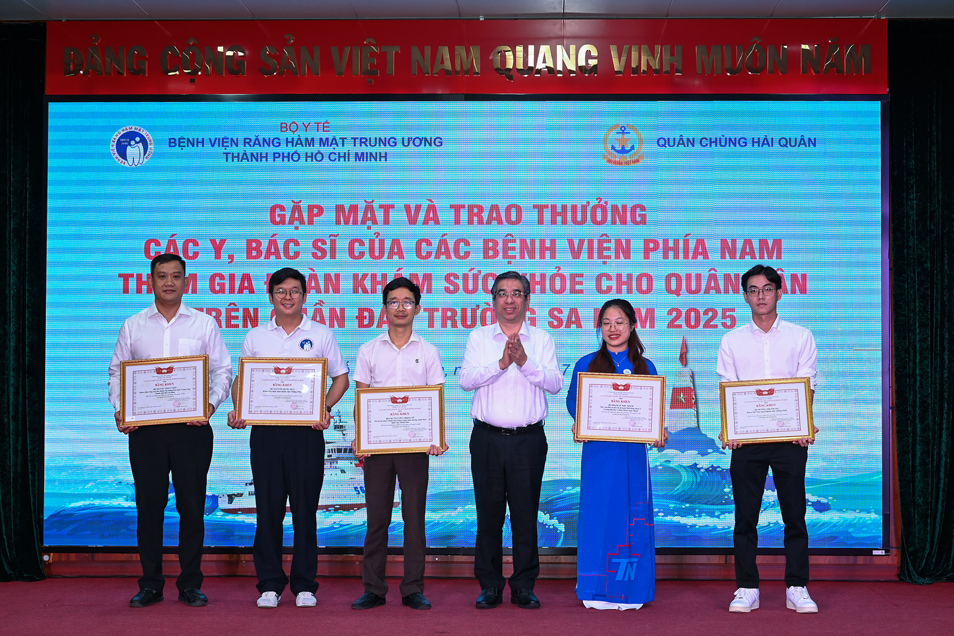 Cũng trong buổi gặp mặt, Ủy ban Mặt trận Tổ quốc Việt Nam TP. Hồ Chí Minh trao tặng Bằng khen cho 6 cá nhân đã tích cực trong công tác chăm sóc sức khỏe quân và dân vùng biển đảo.