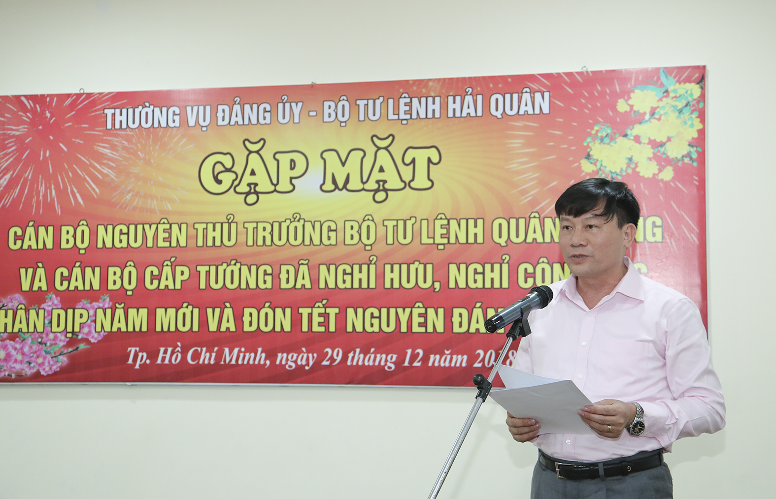 Chiều 29-12, tại TP. Hồ Chí Minh, Thường vụ Đảng ủy-Bộ Tư lệnh Hải quân tổ chức gặp mặt cán bộ nguyên thủ trưởng Bộ Tư lệnh Hải quân, cán bộ cấp tướng đã nghỉ hưu, nghỉ công tác khu vực phía Nam nhân dịp Tết Nguyên đán Kỷ Hợi 2019.