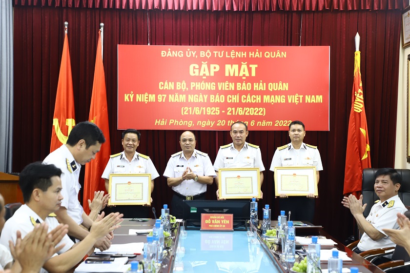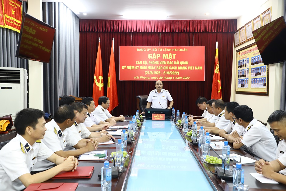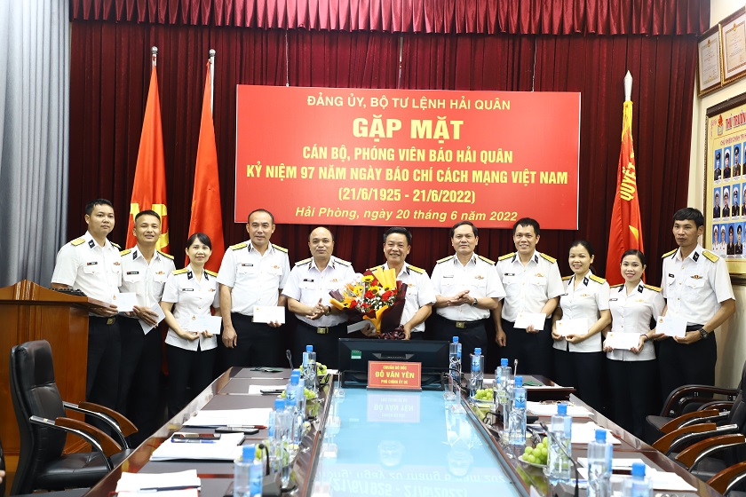 Chiều 20/6, tại Hải Phòng, Bộ Tư lệnh Hải quân tổ chức gặp mặt, chúc mừng cán bộ, phóng viên Báo Hải quân Việt Nam nhân kỷ niệm 97 năm Ngày báo chí cách mạng Việt Nam (21/6/1925 – 21/6/2022). Chuẩn Đô đốc Đỗ Văn Yên, Ủy viên Thường vụ Đảng ủy Quân chủng, Phó Chính ủy Hải quân chủ trì. Cùng dự có Chuẩn Đô đốc Phạm Văn Luyện, Phó Chủ nhiệm Chính trị Hải quân, Bí thư Đảng ủy Cục Chính trị.