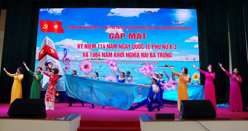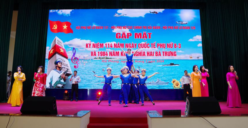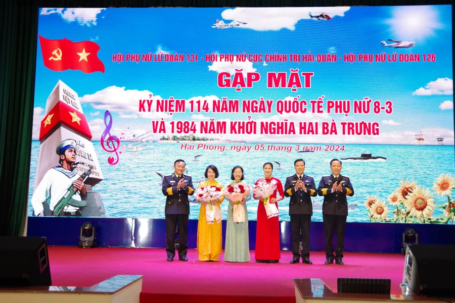 Chiều 5/3, tại Hải Phòng, các hội phụ nữ (HPN): Lữ đoàn 131, Cục Chính trị Hải quân, Lữ đoàn 126 phối hợp tổ chức gặp mặt kỷ niệm 114 năm ngày Quốc tế phụ nữ (8/3/1910 - 8/3/2024) và 1984 năm Khởi nghĩa Hai Bà Trưng. Chuẩn Đô đốc Phạm Văn Quang, Phó Chủ nhiệm Chính trị Hải quân tới dự.