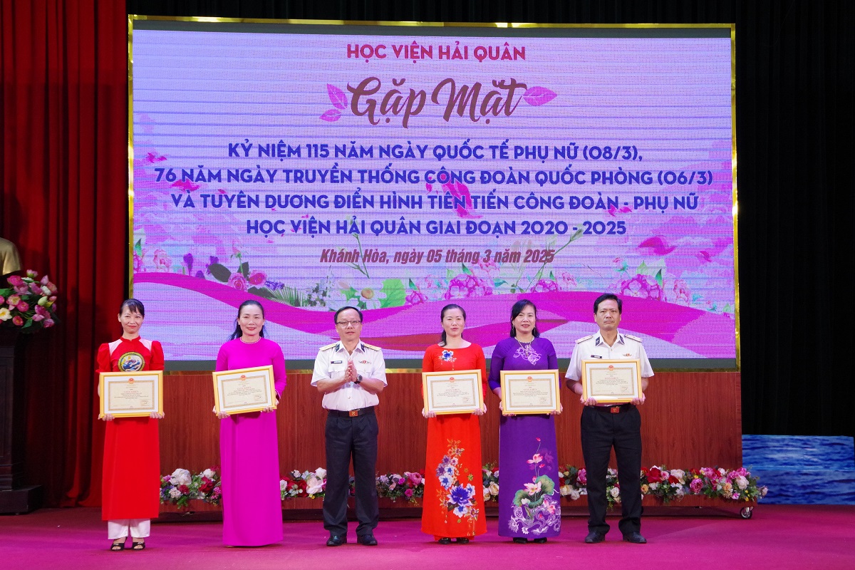 Dịp này, Học viện Hải quân đã tuyên dương, trao thưởng các cá nhân có thành tích xuất sắc trong công tác công đoàn, phụ nữ giai đoạn 2020-2025.