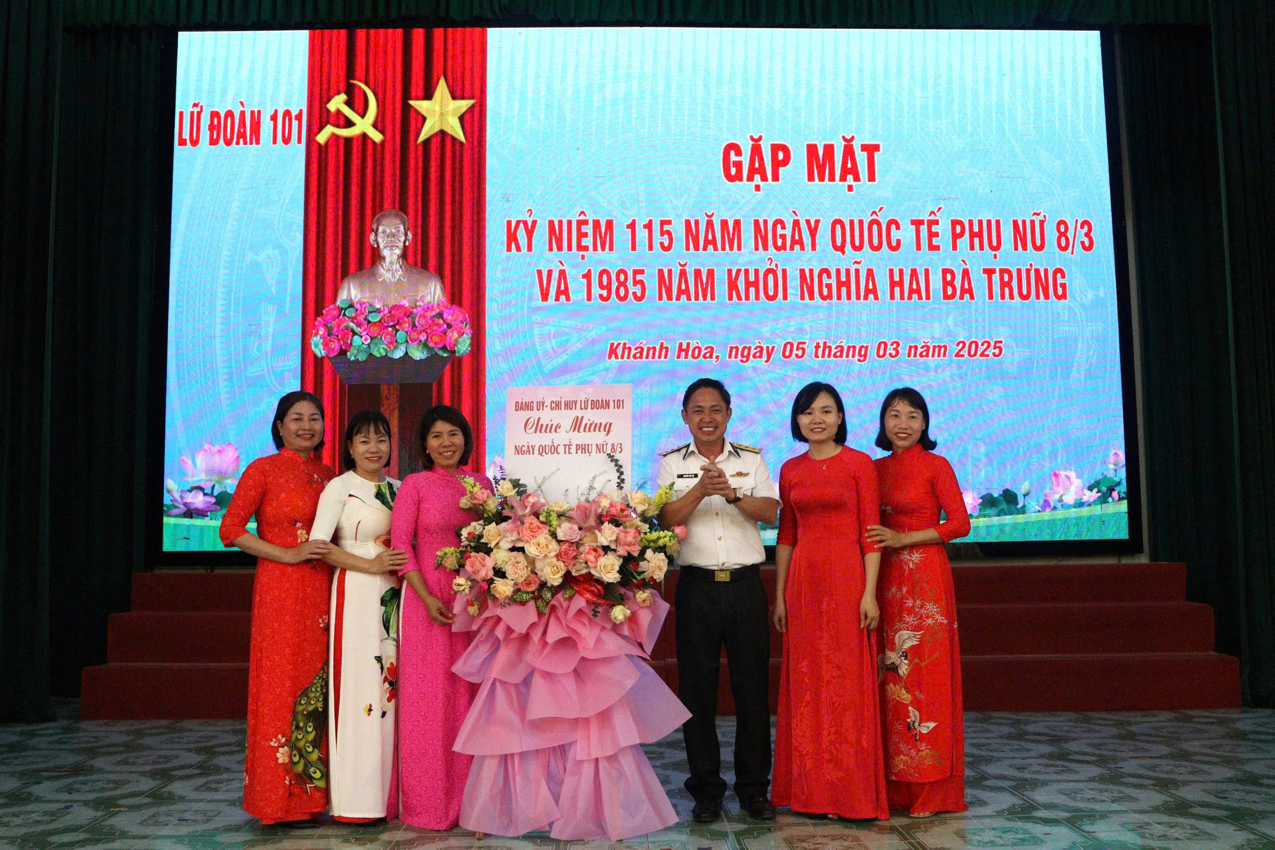 *Cũng chiều 5/3, tại huyện Cam Lâm, tỉnh Khánh Hoà, Lữ đoàn 101, Vùng 4 Hải quân tổ chức gặp mặt kỷ niệm 115 năm Ngày quốc tế phụ nữ 8/3 và 1985 năm Khởi nghĩa Hai Bà Trưng. Thượng tá Nguyễn Văn Tạo, Phó Chính ủy Lữ đoàn dự và chủ trì.