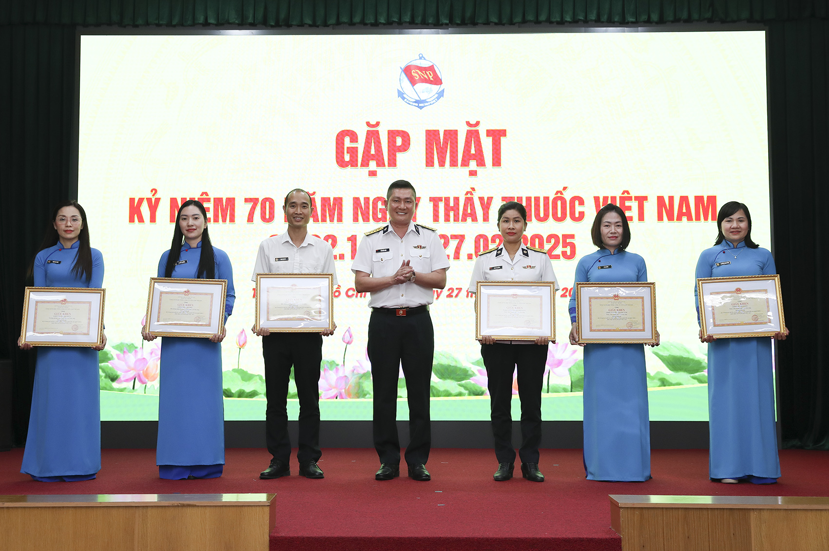 Tại buổi gặp mặt, cán bộ, nhân viên y tế đã được nghe thư chúc mừng của Đảng ủy, Bộ Tư lệnh Hải quân nhân kỷ niệm 70 năm Ngày thầy thuốc Việt Nam; Tổng công ty đã trao thưởng cho các cá nhân tiêu biểu có nhiều đóng góp vào sự phát triển của ngành quân y TCSG giai đoạn 2020-2025.