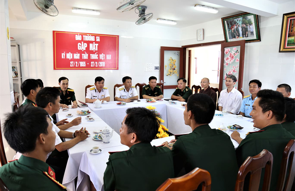 Sáng 27-2, tại thị trấn Trường Sa, huyện Trường Sa, tỉnh Khánh Hòa, đảo Trường Sa đã tổ chức gặp mặt thân mật các cán bộ, y bác sĩ đang công tác tại Trung tâm y tế thị trấn Trường Sa nhân dịp kỷ niệm 64 năm ngày thầy thuốc Việt Nam (27-2-1955 – 27-2-2019). Tham dự buổi gặp mặt có lãnh đạo, chỉ huy đảo, đại diện các lực lượng và nhân dân sinh sống, công tác trên đảo.