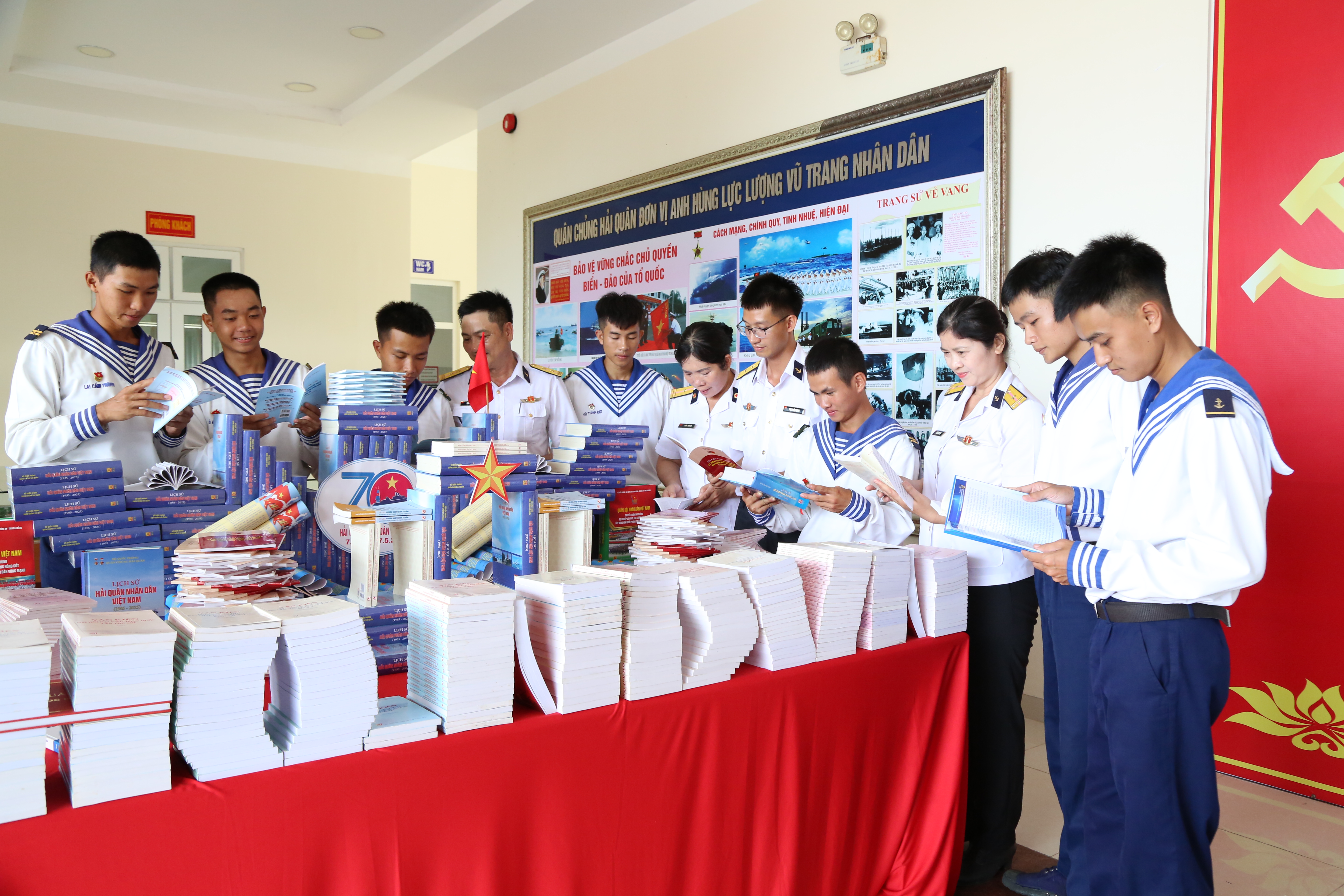 Cán bộ, chiến sĩ Vùng 2 tìm hiểu sách lịch sử trưng bày tại buổi gặp mặt