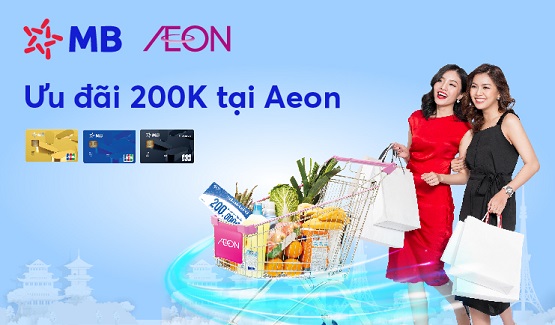 Từ nay tới 30-3-2022, Khách hàng chi tiêu tại Siêu thị Aeon mall bằng thẻ tín dụng MB JCB sẽ được nhận ngay ưu đãi giảm 200K cho hóa đơn từ 1 triệu: