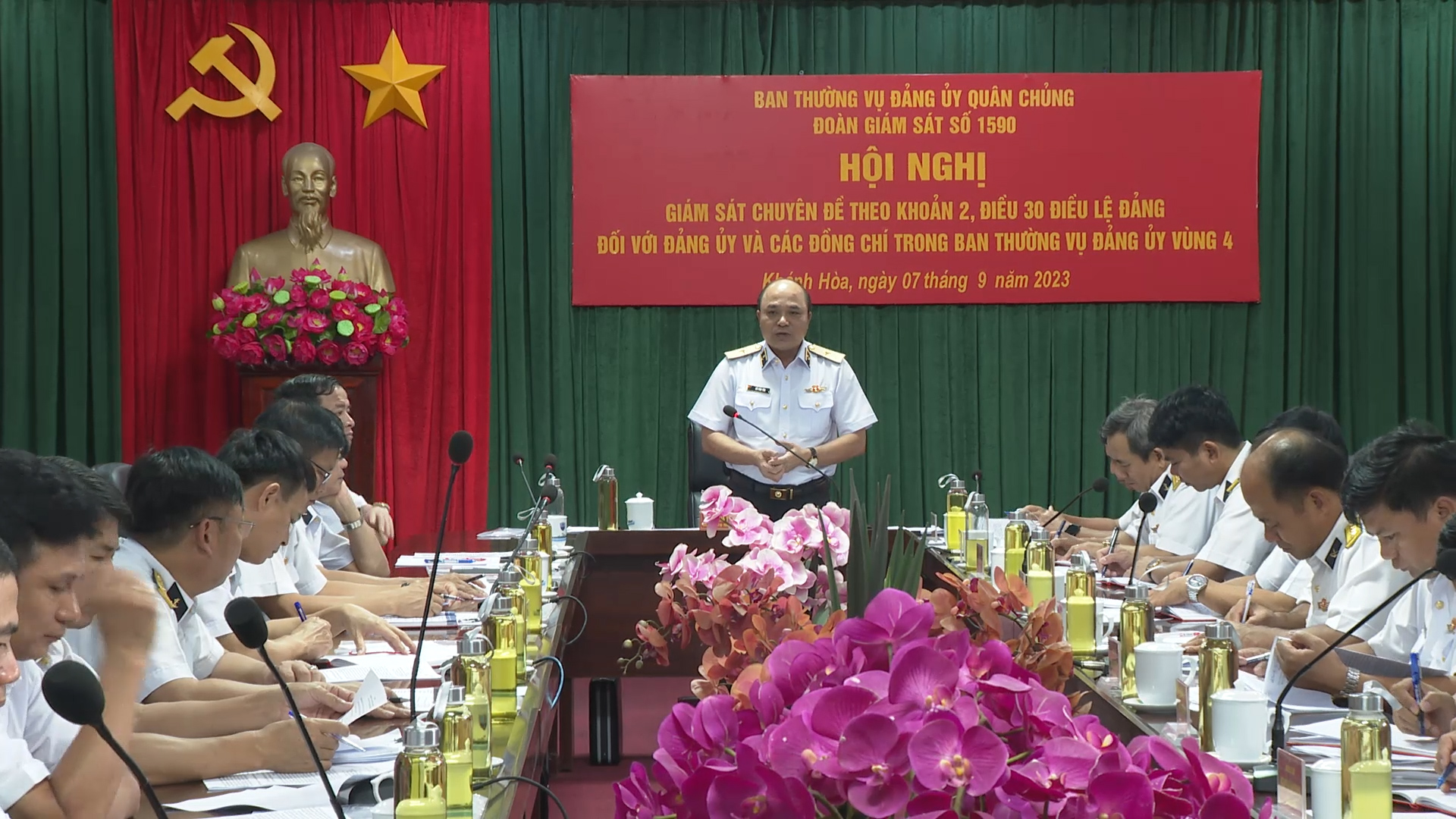 Chiều 7/9, tại TP. Cam Ranh, tỉnh Khánh Hoà, Đoàn giám sát số 1590 của Ban Thường vụ Đảng ủy Quân chủng Hải quân tiến hành Hội nghị giám sát chuyên đề theo Khoản 2, Điều 30, Điều lệ Đảng đối với Đảng ủy và các đồng chí trong Ban Thường vụ Đảng ủy Vùng 4.