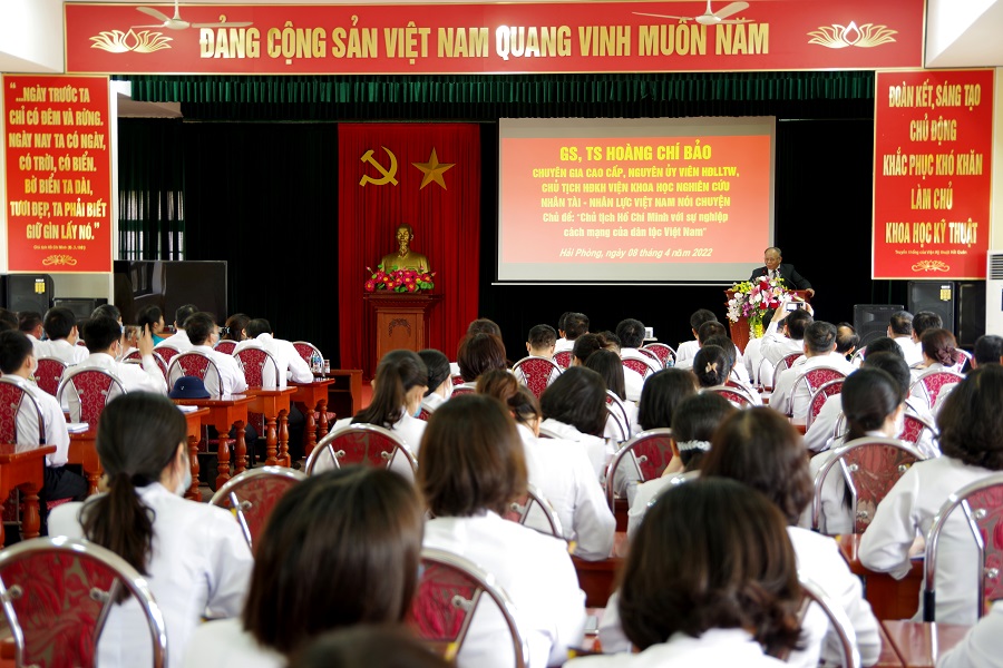 Chiều 8/4, tại Hải Phòng, Viện Kỹ thuật Hải quân tổ chức chương trình giao lưu với chủ đề “Chủ tịch Hồ Chí Minh với sự nghiệp cách mạng của dân tộc Việt Nam”. Giáo sư, Tiến sĩ Hoàng Chí Bảo, nguyên Ủy viên Hội đồng Lý luận Trung ương, chuyên gia cao cấp Học viện Chính trị Quốc gia Hồ Chí Minh là khách mời của chương trình.