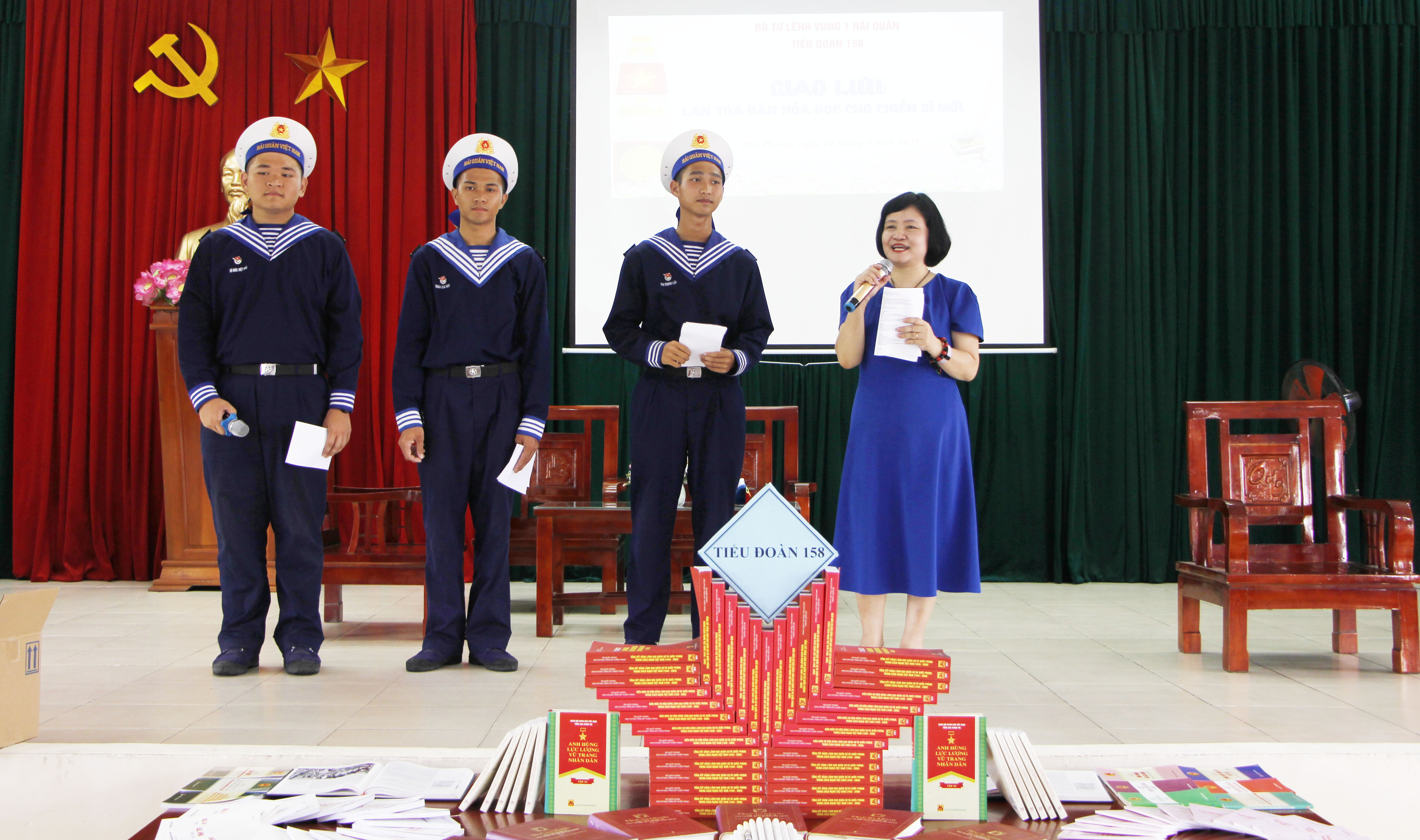 Ngày 24 và 25/5, tại TP. Thủy Nguyên, Tiểu đoàn 158, Vùng 1 Hải quân phối hợp với Câu lạc bộ "Đọc sách cùng con", tổ chức chương trình giao lưu lan toả văn hoá đọc cho chiến sĩ mới.