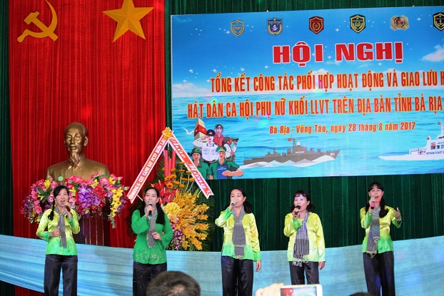 Chiều 28-8, 2 hội phụ nữ cơ sở Lữ đoàn 171, Hải đoàn 129 Hải quân đã tham gia Hội nghị Tổng kết công tác phối hợp hoạt động công tác và giao lưu hát ru, dân ca, nhạc cổ truyền năm 2017 tại Vùng Cảnh sát biển 3 (TP. Vũng Tàu).