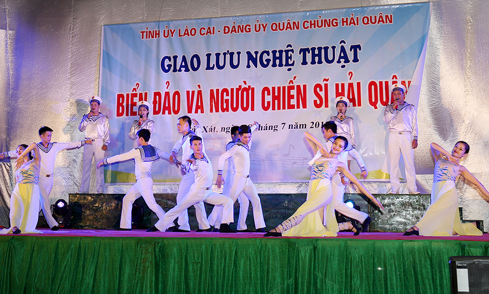 Tối 18-7, tại huyện Bát Xát, tỉnh Lào Cai đã diễn ra chương trình giao lưu nghệ thuật với chủ đề “Biển, đảo và Người chiến sĩ Hải quân”. Tham dự giao lưu nghệ thuật có lãnh đạo và nhân dân các dân tộc huyện Bát Xát; ca sĩ, diễn viên Đoàn Văn công Hải quân và Đoàn Nghệ thuật dân tộc tỉnh Lào Cai.