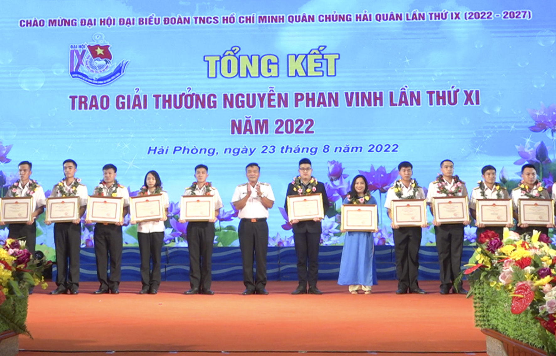 Tối 23/8, tại Hải Phòng, Quân chủng Hải quân tổ chức chương trình giao lưu nghệ thuật và tổng kết, trao Giải thưởng tuổi trẻ sáng tạo Nguyễn Phan Vinh lần thứ XI. Đây là một trong những hoạt động thiết thực chào mừng Đại hội đại biểu Đoàn thanh niên Cộng sản Hồ Chí Minh Quân chủng lần thứ IX (2022-2027).