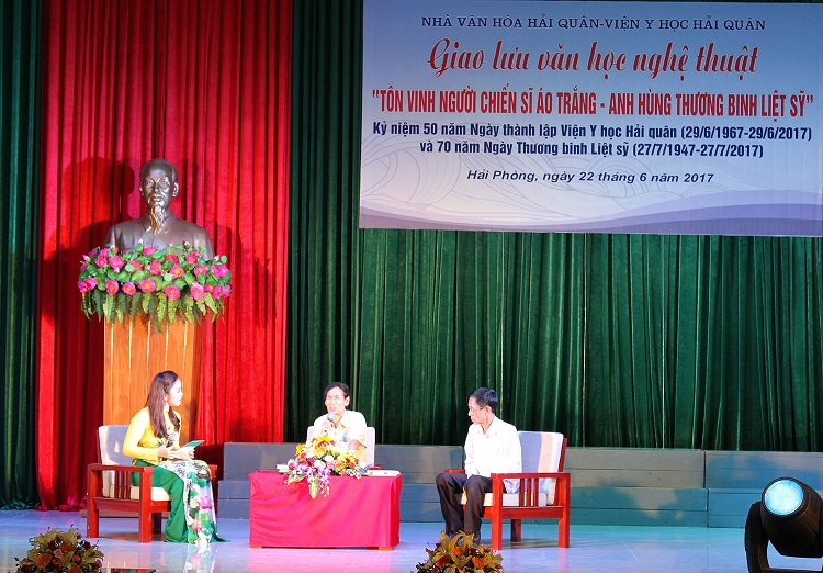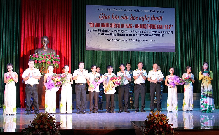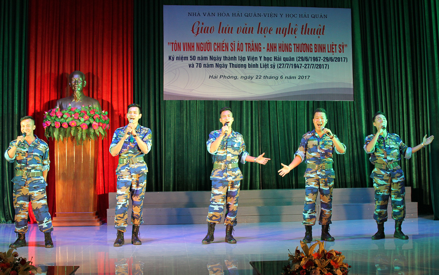 Tối 22-6, tại Hải Phòng, Nhà Văn hóa, Cục Chính trị Hải quân phối hợp với Viện Y học, Cục Hậu cần Hải quân tổ chức chương trình giao lưu văn học nghệ thuật với chủ đề “Tôn vinh người chiến sĩ áo trắng-Anh hùng thương binh liệt sĩ” nhân kỷ niệm 50 năm ngày thành lập Viện Y học Hải quân, 70 năm Ngày Thương binh-Liệt sĩ.
