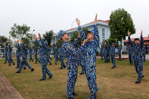 Lúc này, CSM đang chia thành từng nhóm để ôn luyện lại 4 bài thể dục buổi sáng. Hầu hết CSM đã cơ bản thuộc và thực hành động tác khá chuẩn xác. Quan sát thấy vài đồng chí có động tác đánh tay chưa đúng, Trung úy Đinh Hồng Đăng, Trung đội trưởng Trung đội 7, Đại đội 3 lập tức đến gần, nhẹ nhàng hướng dẫn và làm mẫu lại động tác. Sau đôi, ba lần tập đi tập lại cùng với sự chỉ bảo tận tình của các tiểu đội trưởng và trung đội trưởng, động tác của bộ đội trở nên mạnh mẽ và đều hơn.