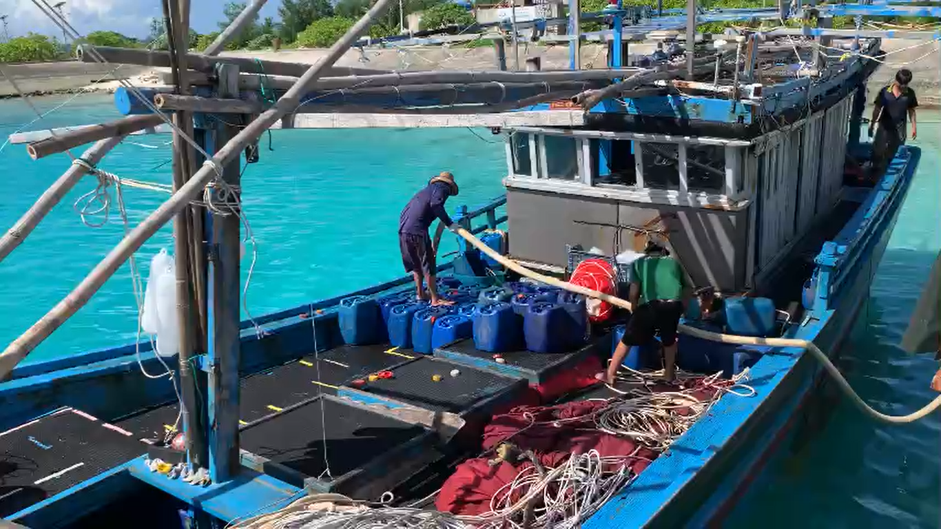 Trung tâm đã tặng cờ Tổ quốc, áo phao cá nhân và cấp 2.000 lít nước ngọt miễn phí cho ngư dân tàu PY 90864 TS.