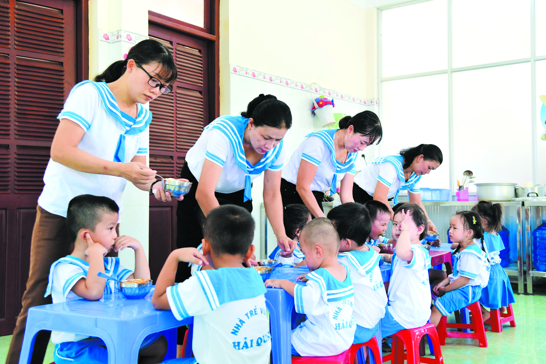Một bữa ăn trưa của các cháu ở Nhà trẻ Vùng 5. Ảnh: Văn Định