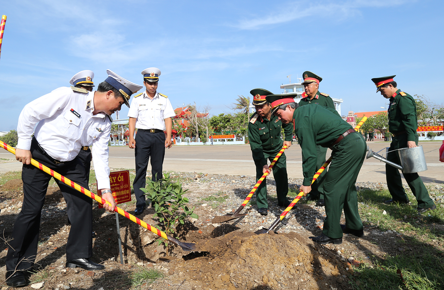 Đoàn đại biểu Tổng cục Chính trị Quân đội Nhân dân Việt Nam trồng cây lưu niệm trên đảo Trường Sa năm 2018