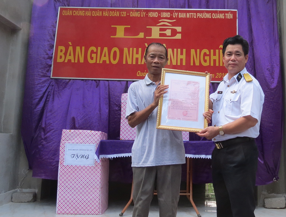 Sau hơn 3 tháng triển khai xây dựng, ngôi nhà có tổng diện tích 40 m2 đã hoàn thành bằng nguồn kinh phí 70 triệu đồng. Ngôi nhà được bàn giao đã thể hiện sự quan tâm và tình cảm của cán bộ, chiến sỹ, công nhân viên Hải đoàn 128 Hải quân với gia đình liệt sỹ, góp phần cùng địa phương chăm sóc và tạo điều kiện cuộc sống tốt hơn cho gia đình chính sách.