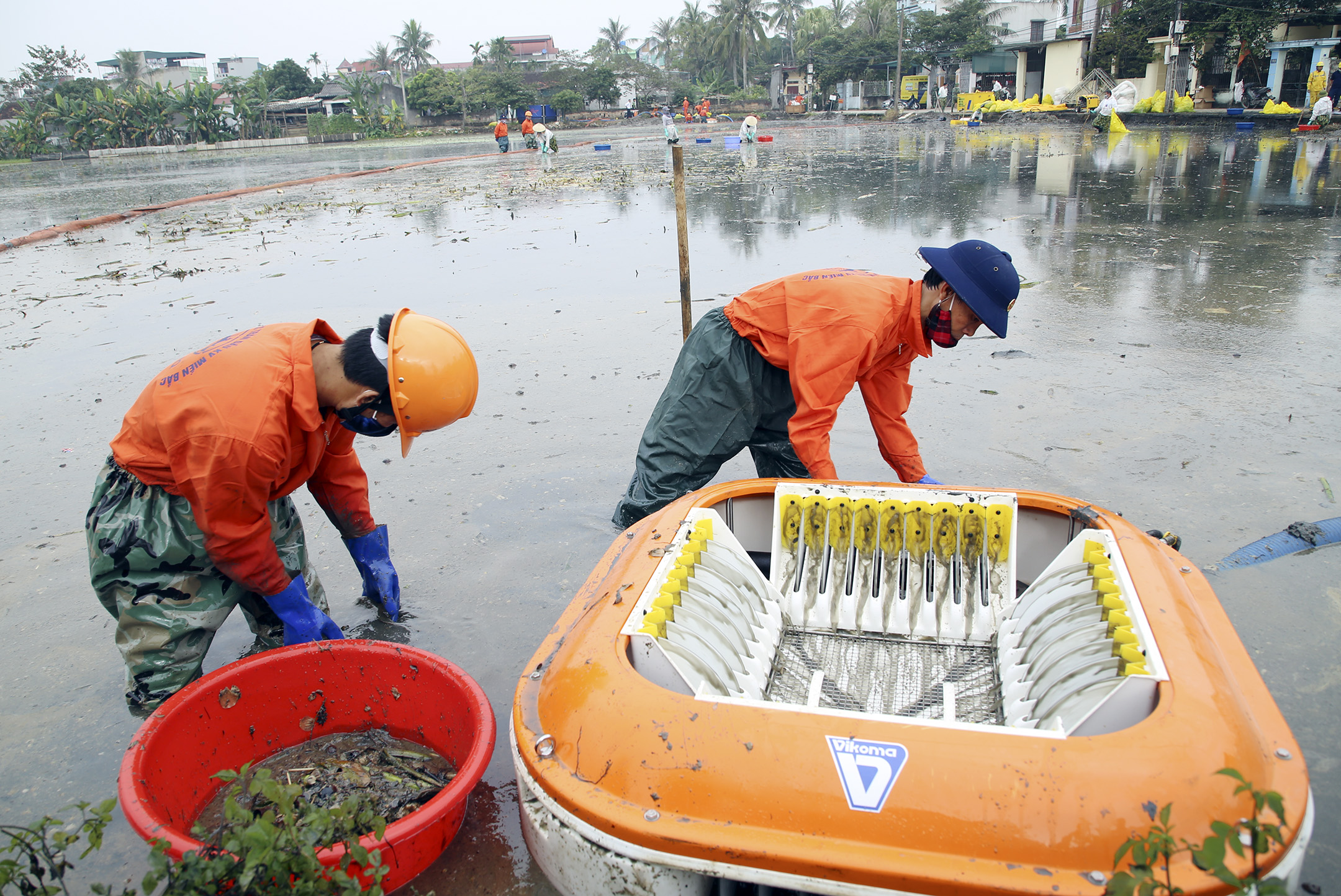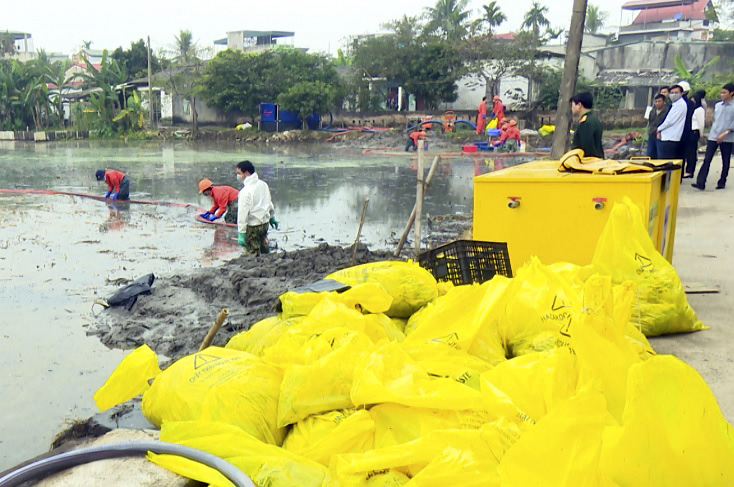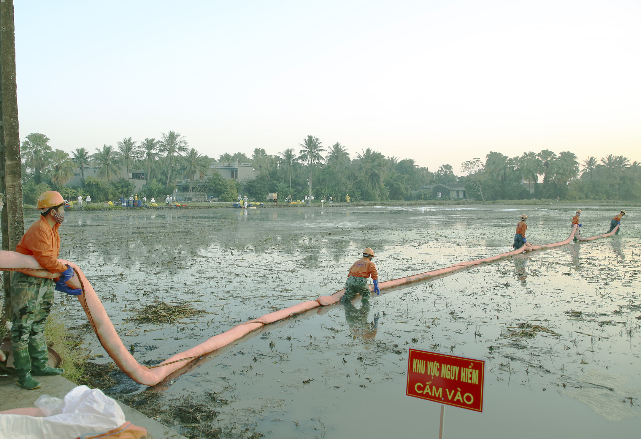 Để đẩy nhanh tiến độ xử lý, không ảnh hưởng đến đời sống sinh hoạt của bà con nhân dân, Hải đoàn 128 đã phối hợp với các lực lượng với trang thiết bị đặc chủng khắc phục sự cố tràn dầu. Đến nay, cơ bản lượng dầu tràn đã được thu gom và xử lý theo quy định.