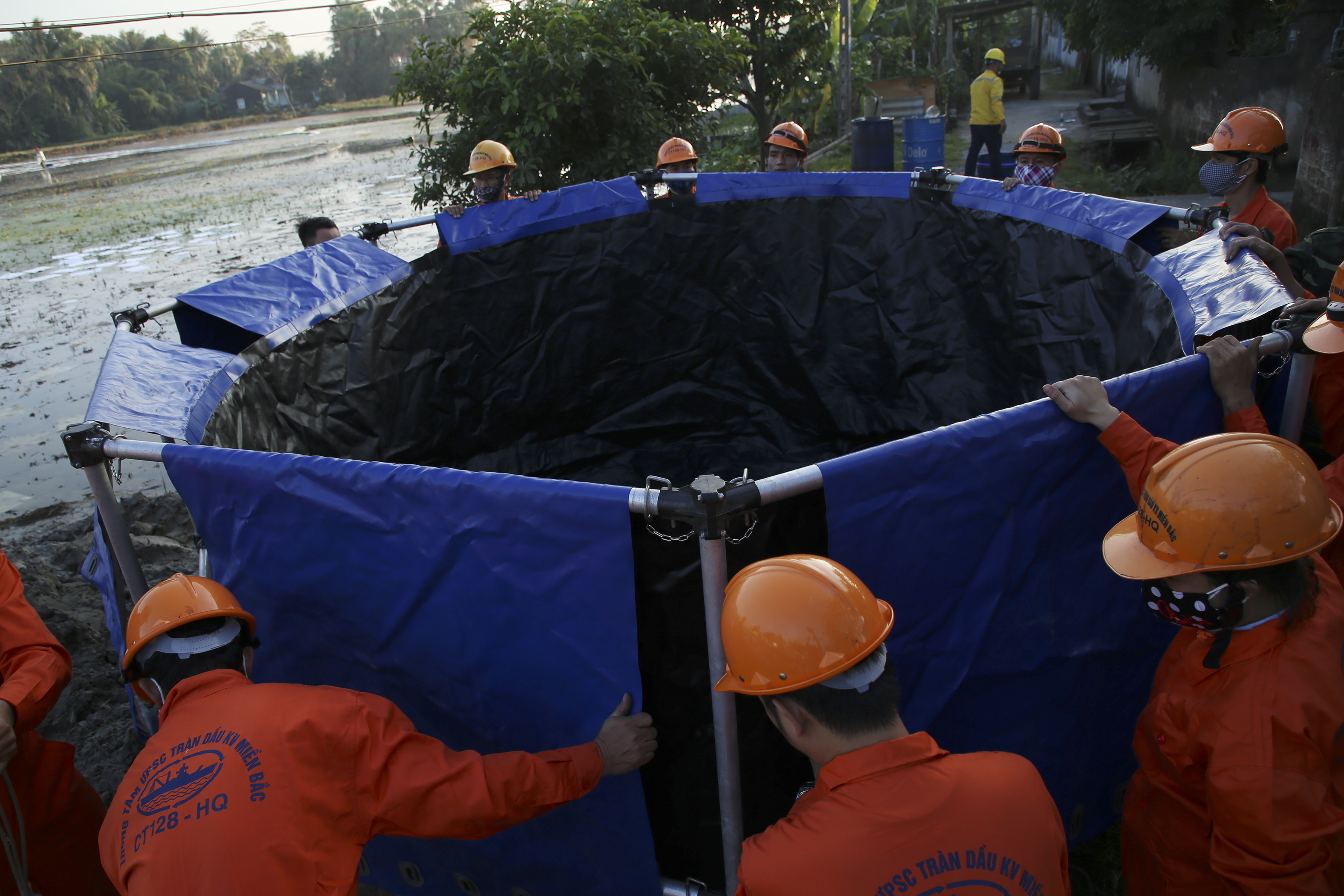 Trung tâm ứng phó sự cố tràn dầu miền Bắc, Hải đoàn 128 triển khai bể chứa dầu dã chiến