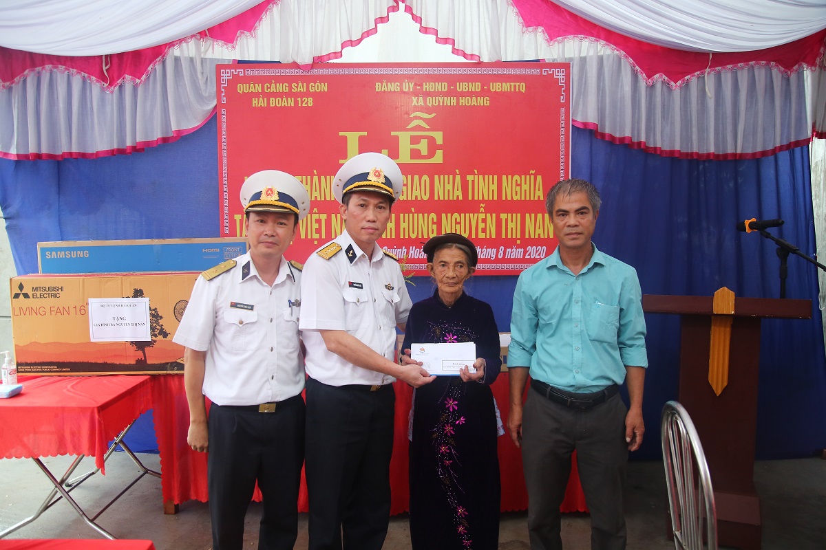 Tại buổi lễ, thủ trưởng Cục Chính trị Hải quân; Tổng công ty Tân cảng Sài Gòn; Hải đoàn 128 và chính quyền, đoàn thể địa phương tặng gia đình Mẹ NguyễnThị Nan nhiều phần quà thiết thực.
