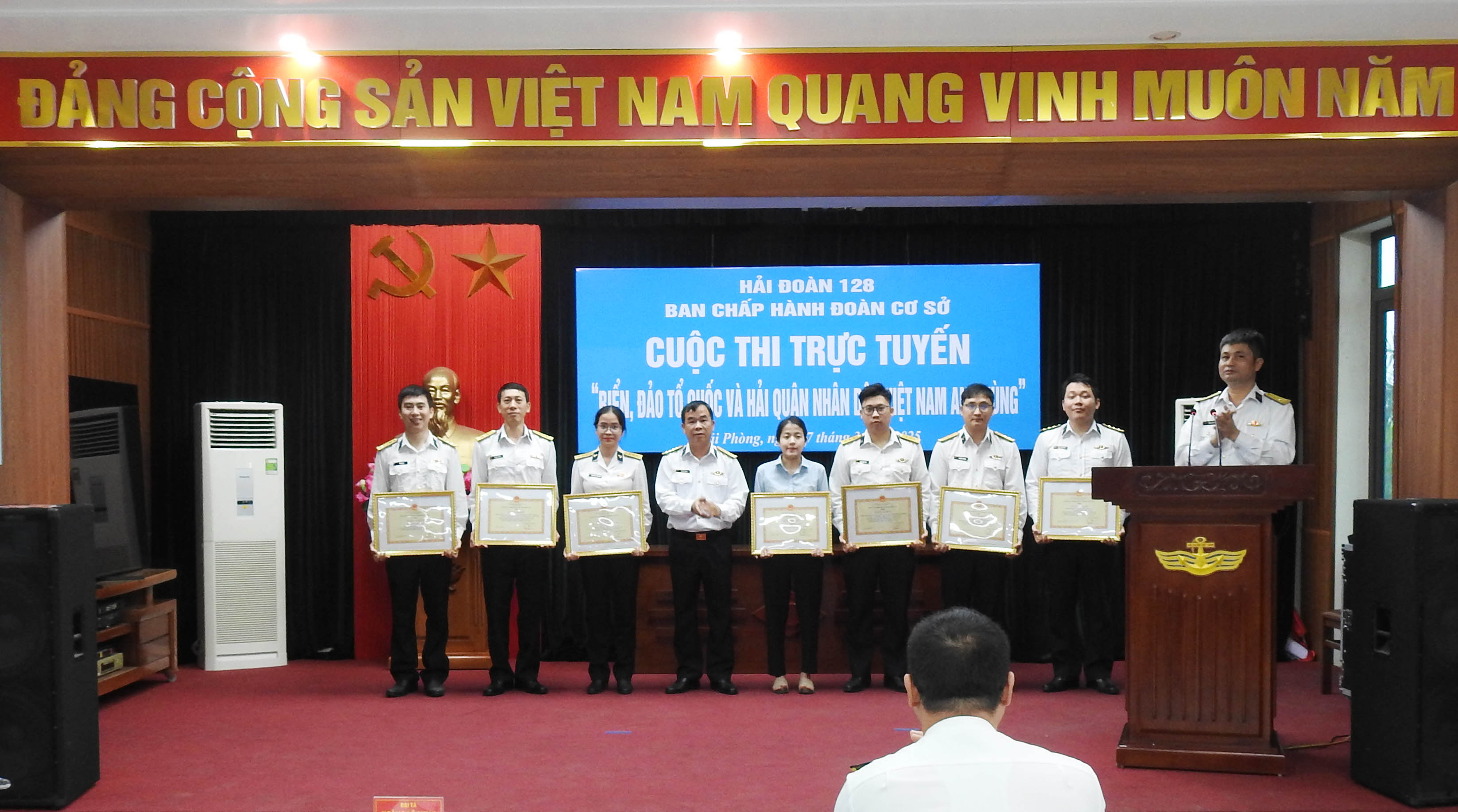 Dịp này, thủ trưởng Hải đoàn 128 cũng đã trao thưởng 7 tập thể và hơn 20 cá nhân có thành tích tiêu biểu trong Cuộc thi tìm hiểu 50 năm Ngày giải phóng miền Nam, thống nhất đất nước.