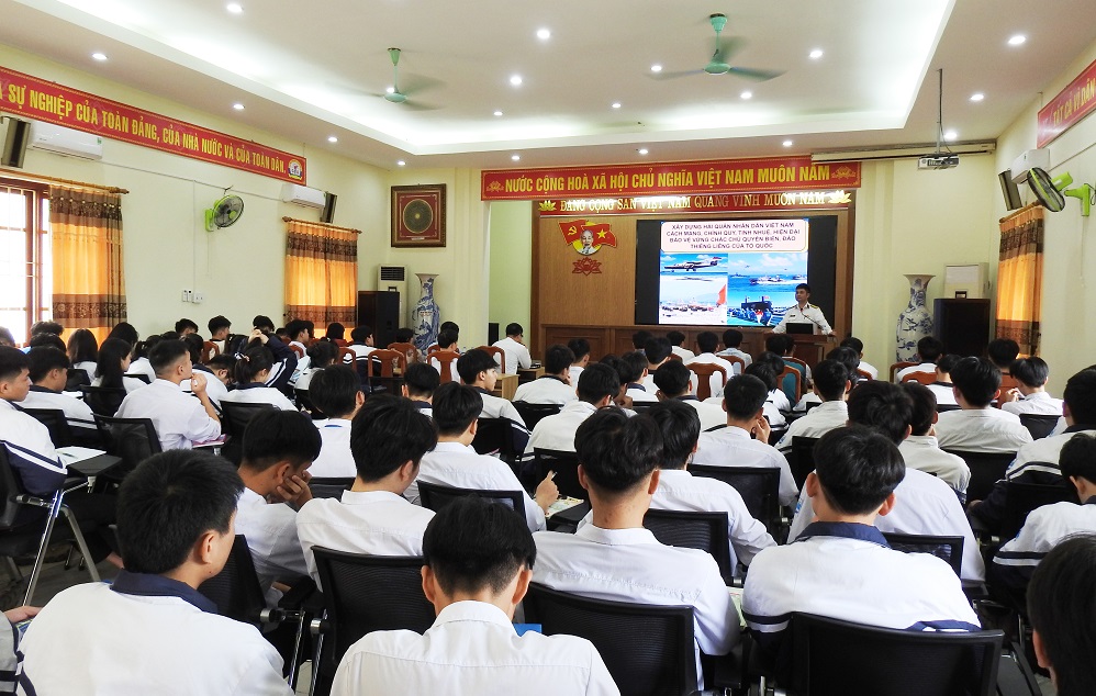 Báo cáo viên Hải đoàn 128 đã cung cấp thông tin về tình hình biển, đảo thời gian qua; vị trí, vai trò của biển, đảo nước ta trong sự nghiệp xây dựng và bảo vệ Tổ quốc; biển, đảo Thanh Hóa - tiềm năng và lợi thế; chức năng, nhiệm vụ, quá trình xây dựng, chiến đấu, trưởng thành cùng những thành tích, chiến công tiêu biểu của Hải quân Nhân dân Việt Nam; kết quả trong thực hiện nhiệm vụ bảo vệ chủ quyền biển, đảo của Tổ quốc và xây dựng Hải quân Nhân dân Việt Nam cách mạng, chính quy, tinh nhuệ, hiện đại; thông tin tuyển sinh Học viện Hải quân năm 2024....
