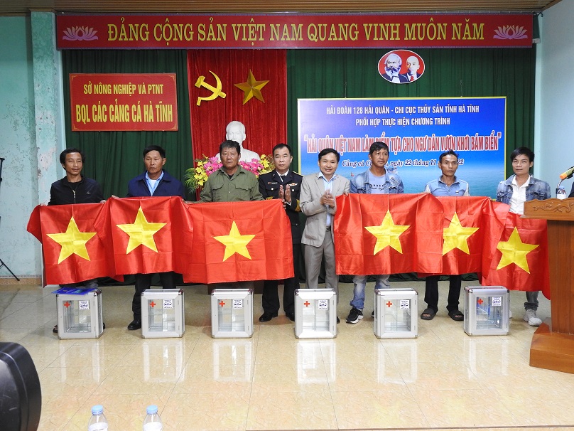 Ngày 22/11, tại các cảng và bến cá Lạch Thơi (xã Sơn Hải, huyện Quỳnh Lưu, tỉnh Nghệ An), cảng Cửa Sót (xã Thạch Kim, huyện Lộc Hà, tỉnh Hà Tĩnh), Hải đoàn 128 Hải quân phối hợp với Chi cục Thủy sản, Sở Nông nghiệp và phát triển nông thôn tỉnh Nghệ An, Hà Tĩnh thực hiện chương trình “Hải quân Việt Nam làm điểm tựa cho ngư dân vươn khơi bám biển”.