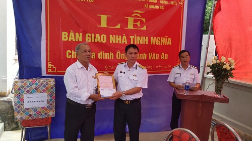 Ngày 25-7, tại Thanh Hóa, Hải đoàn 128, Quân cảng Sài Gòn đã tổ chức bàn giao Nhà tình nghĩa cho gia đình ông Trình Văn An ở xã Quảng Đại, thành phố Sầm Sơn, tỉnh Thanh Hóa.