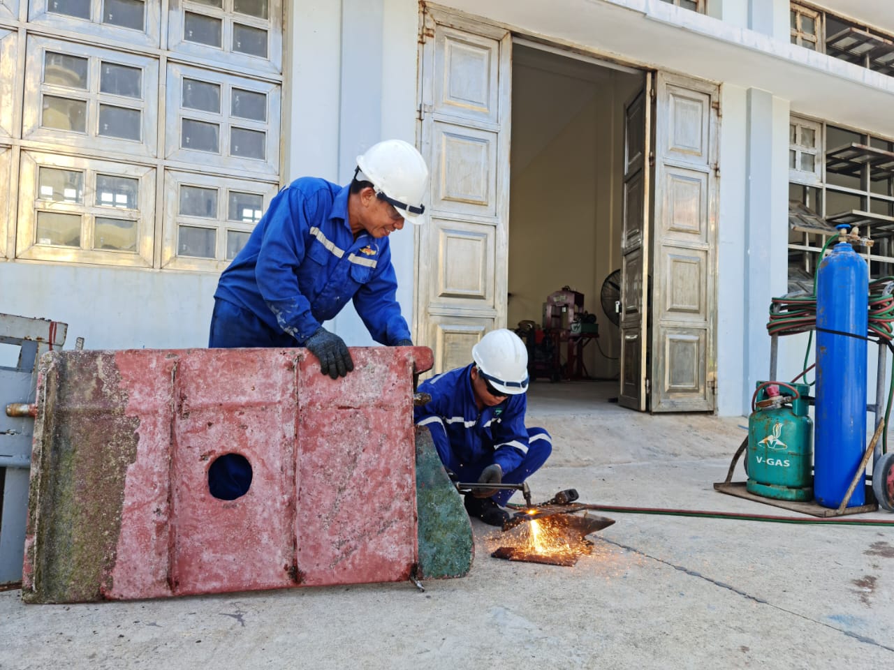 Nhân viên Trung tâm sửa chữa trục bánh lái cho tàu cá BTh 98486 TS