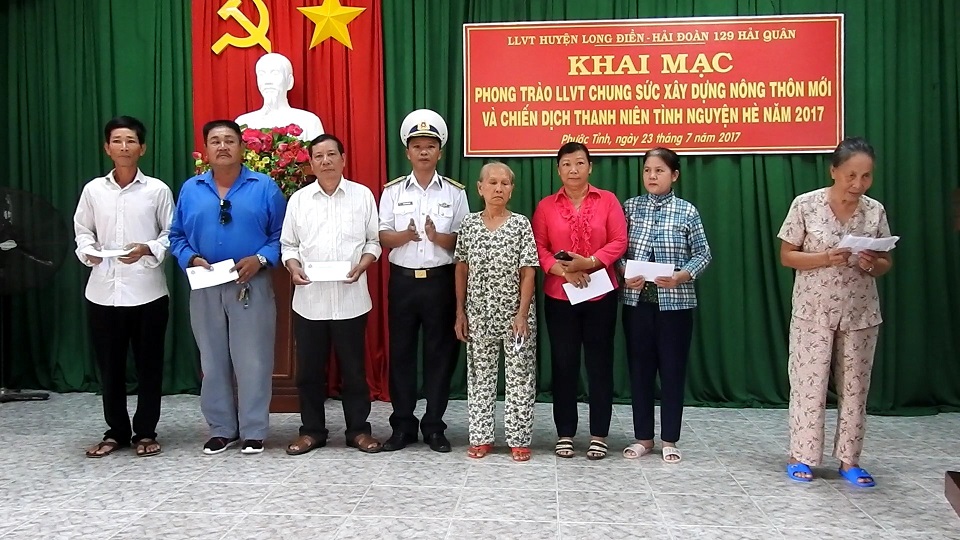 Cũng trong dịp này, Hải đoàn 129 đã trao 10 suất quà trị giá 5 triệu đồng cho các gia đình chính sách của 2 xã Phước Hưng, Phước Tỉnh.