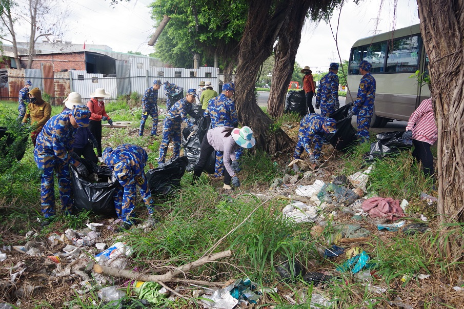 Ngay sau buổi lễ phát động, lực lượng đoàn viên thanh niên Hải đoàn 129 đã phối hợp với nhân dân Khu phố 3 và cán bộ, giáo viên Trường mầm non Phước Thắng thu gom rác thải nhựa trên tuyến đường Võ Nguyễn Giáp dài 4km.