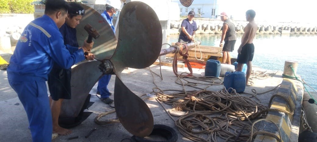 Nhân viên kỹ thuật Trung tâm sửa chữa chân vịt của tàu cá